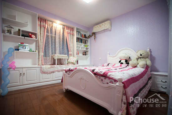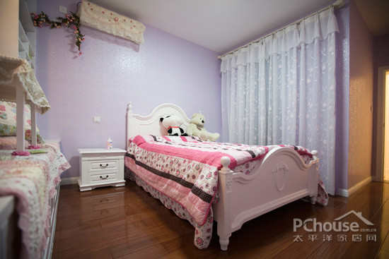 女儿的卧室更偏田园风格,满足女生的“公主情结”。可爱的摆设,把小小的空间完美的利用上。