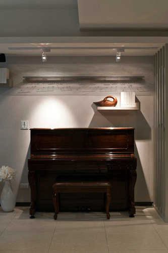 清玻璃上权释设计巧思漆入一段五线谱线条,轨道灯光投影自然成笔,具体气质化练琴氛围。