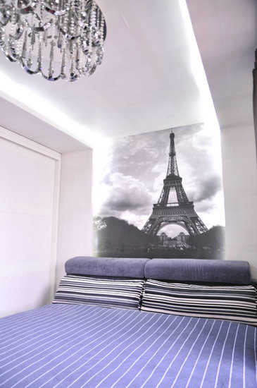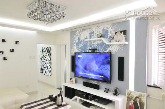 原房屋结构基本未做变动,只在原有基础上进行了功能分区及家具布局摆放。白色为主色调,局部壁纸点缀。细节体现于吊顶形式及与吊顶呼应的电视柜、电视墙隔板等。