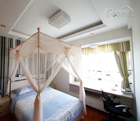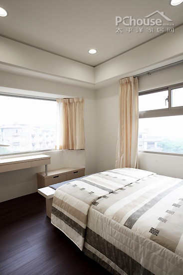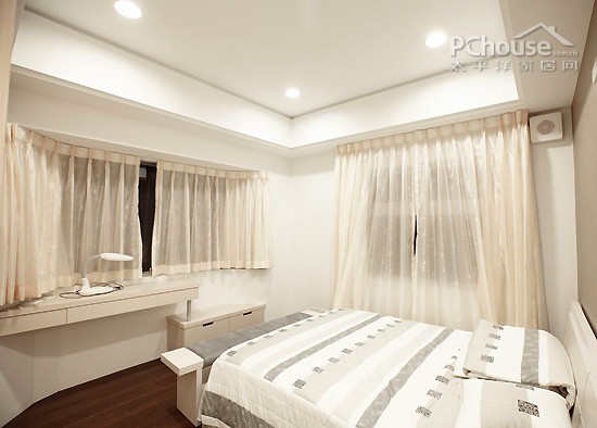 如果空间比较小,不妨可以利用飘窗的这个位置,来增加一个书桌的位置,特别推荐儿童房的设计。