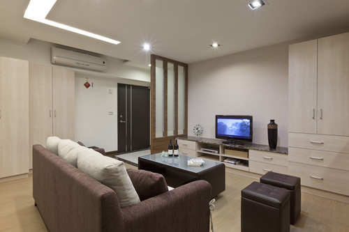 4.客厅-室内隔间多为柚木色系,因此设计师在柜体上使用浅色调和,为空间增添了层次感。