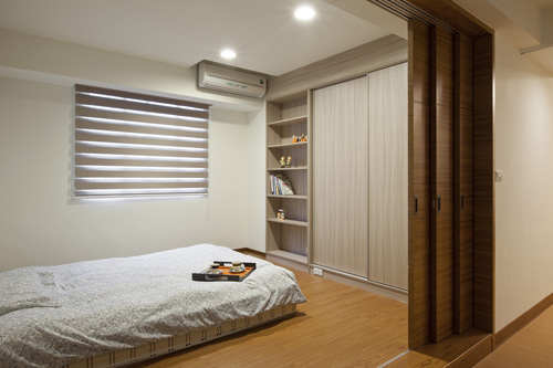 封闭的旧屋格局原先规划有三房,设计师依居住成员的需求调整为二房,并将剩余的坪数转移来放大主卧,也增加一间实用的更衣室。而设计上的最大特色即是巧妙结合木作与系统柜,发挥有限坪数下的最大效能,以合理、流畅的生活逻辑谨慎思考,以达省空间又兼顾实用性的最大前提。