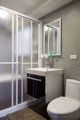 12.卫浴-更新老旧管线,以汤屋经常使用的板岩材质,营造减压放松的气息。