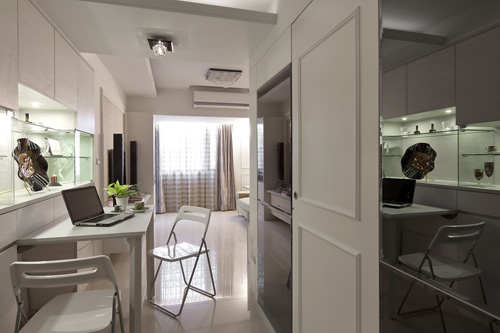 3.餐桌-走道隐藏一张轻巧简便的餐桌,就餐时间可自行拖曳出来使用,平时就收纳到柜内,还原走道宽度。