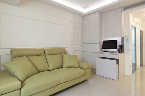1.定位沙发方向时,首要考虑是要使屋主能清楚看到进来的客人,因此选定沙发与电视墙配置,主要动线便是绕着沙发后方通过。