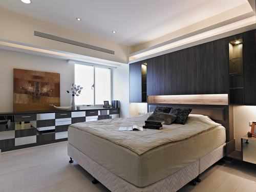 窗边半腰柜增添收纳机能,床头避梁亦提供完整展示及收纳空间。