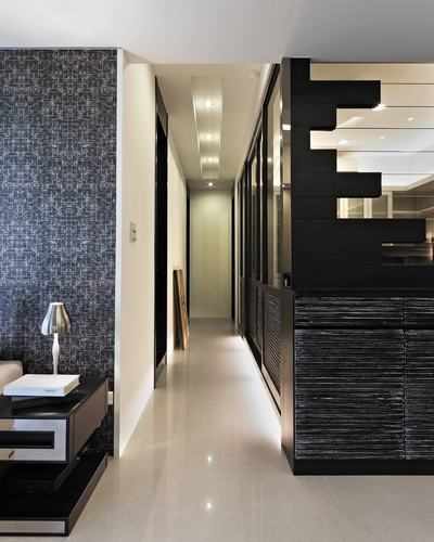 大理石与金属铁件个性有型,对应后方大量储藏量及穿鞋椅各个收纳,看出设计师的用心。