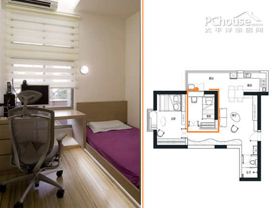 次卧设计:重新规划,分出床、衣柜、书桌的位置。