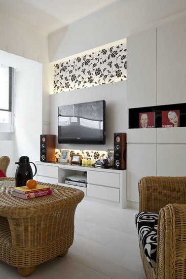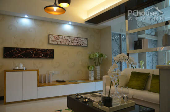 简洁而又时尚的电视墙搭配简洁纯白的收纳柜,在实用当中也能起到美观作用。