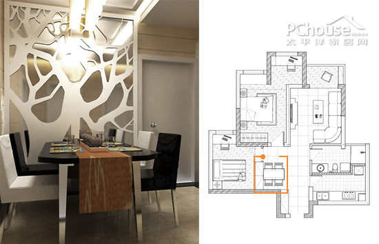 4.餐厅打掉原来的墙体,做成小卧室的储物空间,在背面做个简单的造型成为餐厅的背景。
