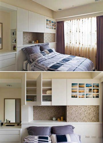 男孩房的出口是走道,而位于同一平面的主卧室出来则是开放规划的书房,可一家同时使用的空间设计,让女主人在厨房下厨时亦能同时照看伏在案上用功的小朋友。