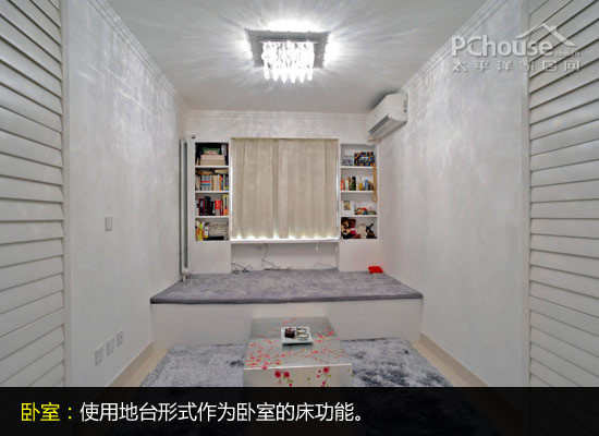 使用地台形式作为卧室的床功能。夏天坐在这里休息也是非常凉爽和惬意。