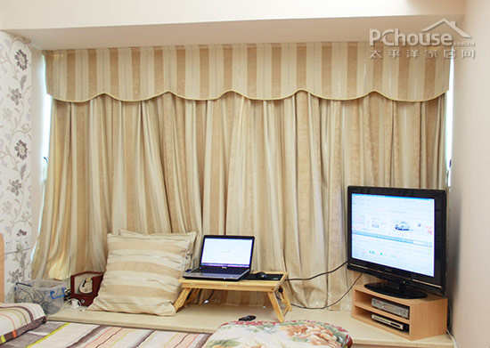 做了榻榻米之后考虑到层高会较压抑,所以利用竖纹墙纸来拉伸整个空间高度。