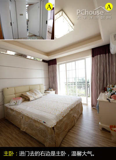 主卧的设计可是设计师的得意之作,这里面可是暗藏玄机,设计师通过几扇门的巧妙设计,就将之前的3房2厅改成了现在的2房2厅。