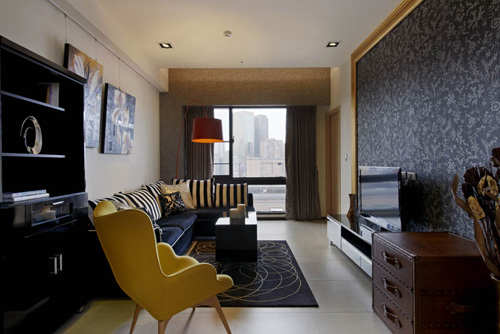 擅长装饰艺术的王威翔,在空间中设定黑、白、灰简洁调性,甫入玄关华丽感壁纸铺陈,灰镜立面巧妙隐藏开门即对厕的问题,而色彩选择让屋主拥有揽镜显瘦的愉快心情。壁纸图腾呼应入室,客厅部分跳以红色立灯、黄色单椅自由切换度给予空间无限想象。