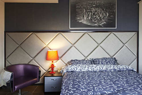 绷布与壁纸混搭,菱型延伸将视野自然导引入窗外都会景观。