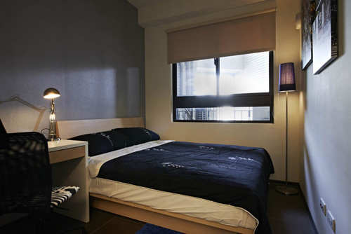 延续着主卧灰色系的壁纸运用,色阶沉稳刻画着男主人刚硬性格。
