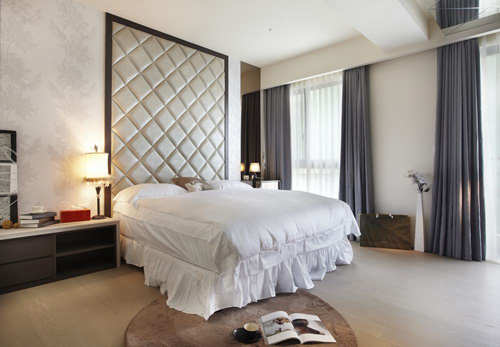 圆弧造型板修梁的长辈房,配上刻意增加皱折度的窗帘软件,质感份量大幅提升。